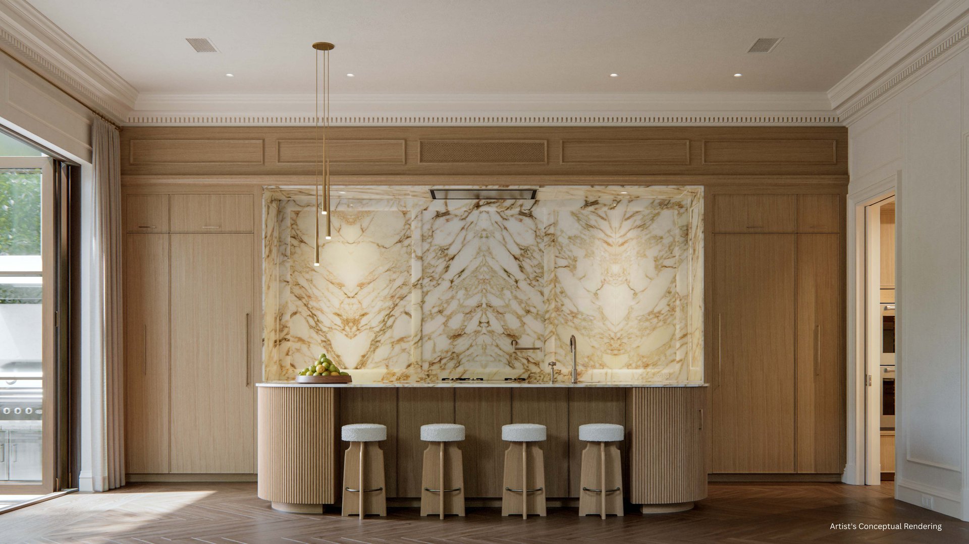 - Custom Italian cabinetry and complete millwork design in kitchen and back kitchen